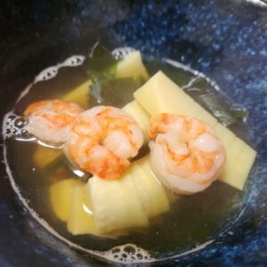 『竹の子とワカメと海老の酒蒸し』で🎵